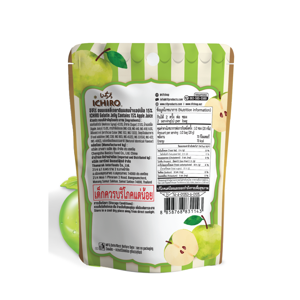 ปลุกความสดชื่นในตัวคุณด้วย อิจิโร่ กัมมี่ รสแอปเปิ้ล ขนมเยลลี่เจลาตินเนื้อนุ่ม ที่จะทำให้ทุกคำของคุณเต็มไปด้วยรสชาติและความสนุก